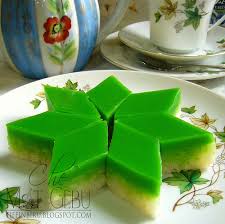 campurkan pati santan yang telah di blend dengan daun pandan tadi. Kacau